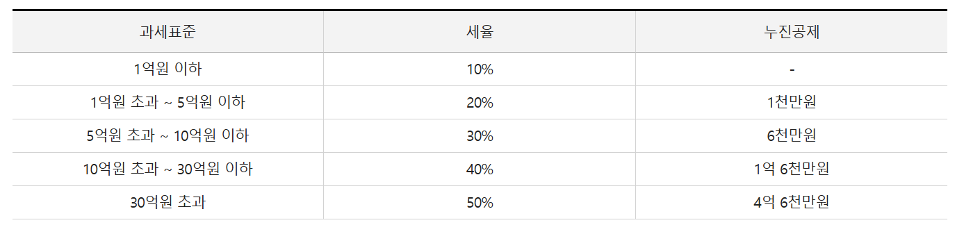 ▶ 상속세율표 (2025년 기준)